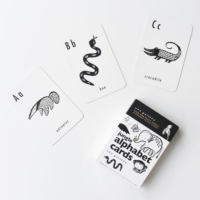 These beautifully illustrated Alphabet Flash Cards by Wee Gallery are the perfect gift for newborns, toddlers or anything in between. Printed on thick card stock with rounded corners and eco inks, these sturdy cards are durable and feature distinctive Wee Gallery animals on one side and a san serif letter on the other.